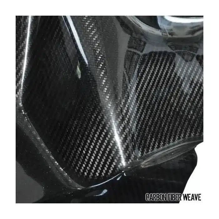 This carbon fiber kit features a high-quality carbon fiber heat shield, carbon fiber air duct to the fresh air intake on the factory core support, AEM Dry-Flow air filter, and includes all installation hardware.