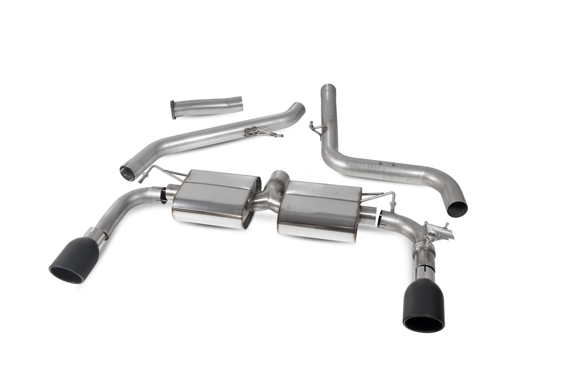 The Scorpion GPF-back Exhaust features 114mm Indy Black Ceramic Tips, adding a stylish touch to the rear of the vehicle. It is important to note that there are options available for customers to select different tips (trims) when purchasing the system.