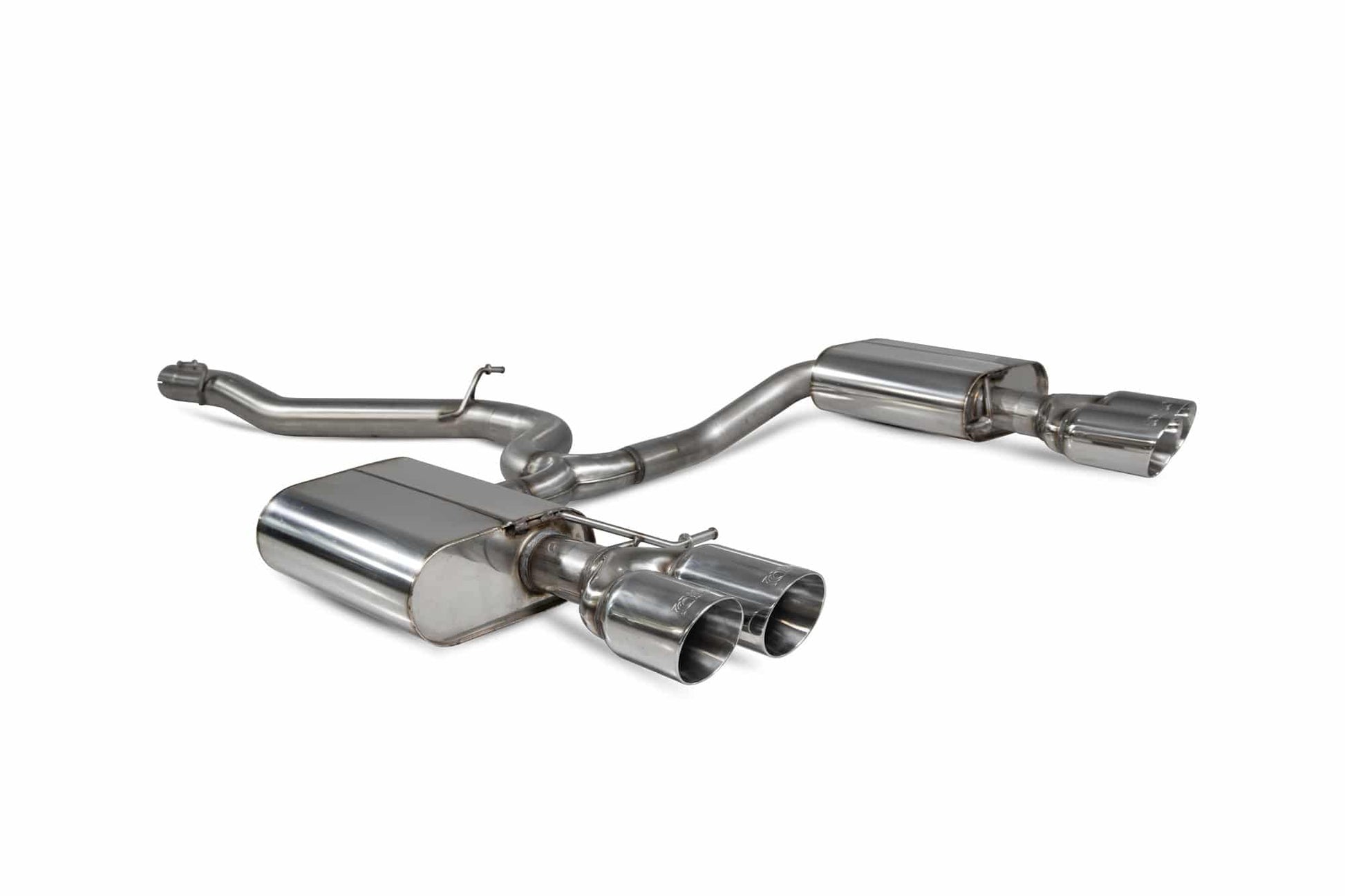 The Scorpion Seat Leon Cupra ST 300 Cat-back Exhaust comes with 80mm/3.15? piping and is equipped with 90mm Daytona quad tips. However, its important to note that there are options available for customers to select different tips (trims) to suit their personal preferences.